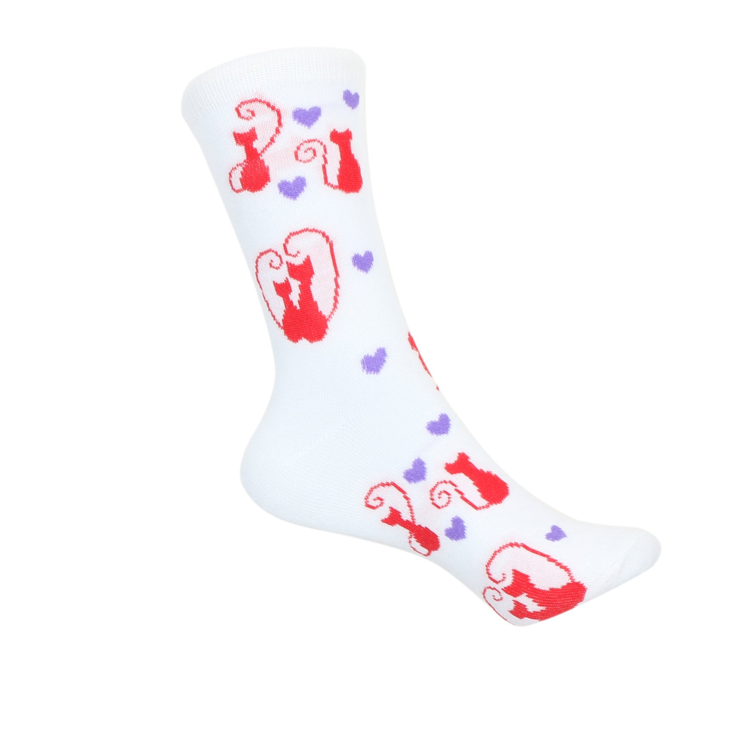 12 Pairs Women’s Lightweight Kittty Cat&Love Heart Patterned Cotton Crew Caual Cute Socks
